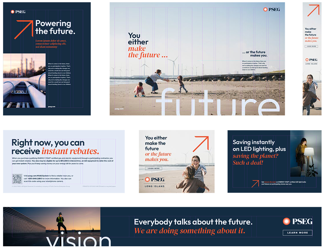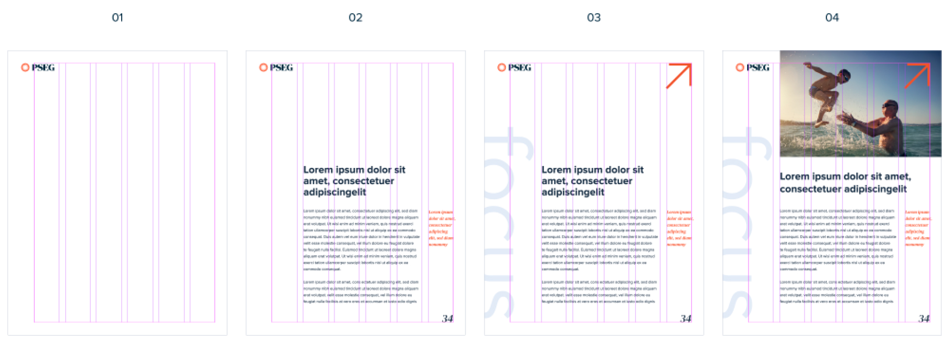 We always use six columns in vertical and horizontal layouts, which creates consistency across our entire system. When we have a larger left margin, we can place our power word when we need to use it in the composition. It also allows us to apply the logo in an easy way to align with the rest of the content.